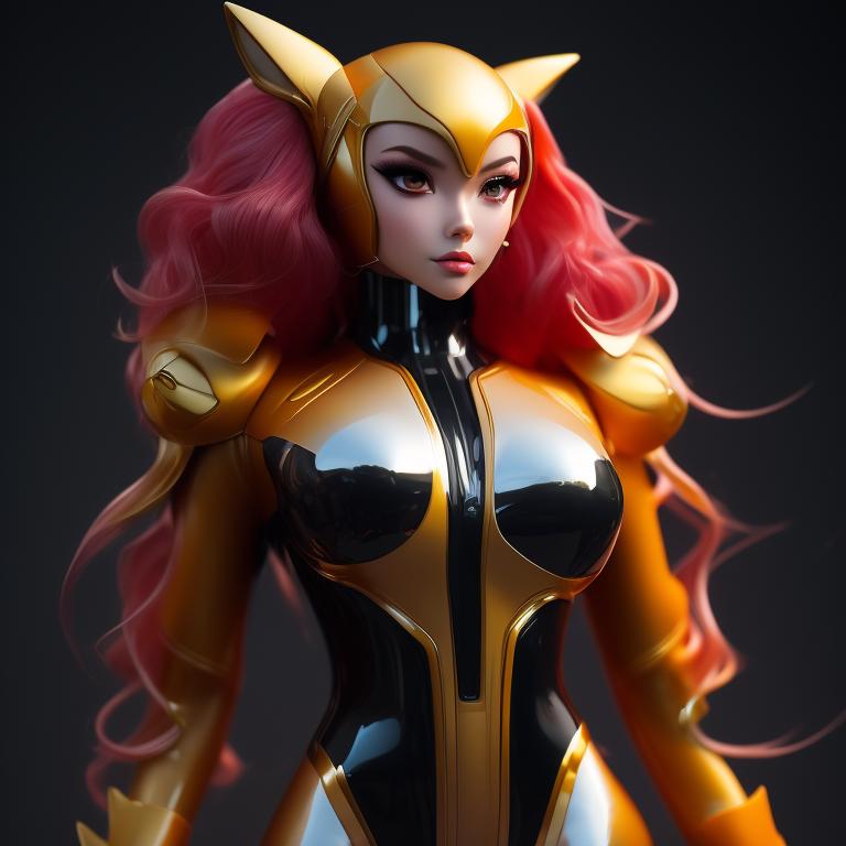 Pokemane, Latex Bodysuit, Shiny Gloss Finish, by artgerm and loish., Trending on Artstation, Earth tones, detailed digital painting, Soft focus, Sleek futuristic design, Amber Lighting
