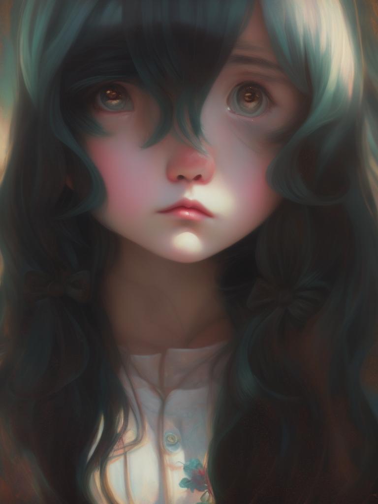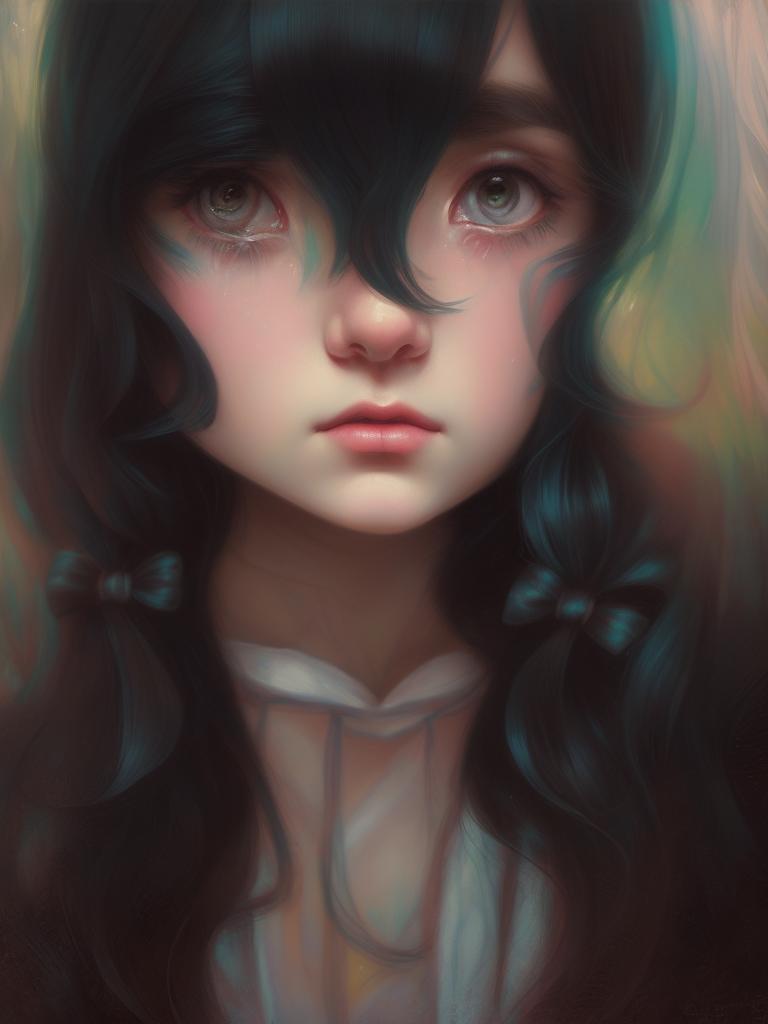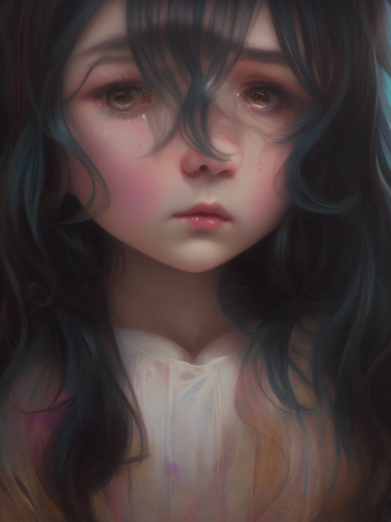Portrait painted in the style of john william waterhouse, art by jasmine becket-griffith and amy brown, Lively appearance, Cottagecore, Sad crying young woman. Black hair. Small roses in hair., Soft Lighting, Pastel colors, Dreamy, Highly detailed, Digital painting, Artstation