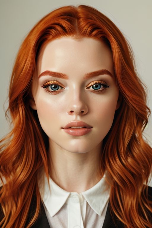 hyper-realistic portrait of a mysterious woman, 18yo, redhead, face shot