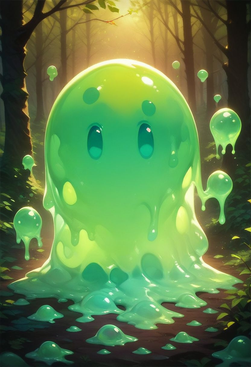 (slime:1.3), score_9, score_8_up, score_7_up, rating_safe, realistic, intricate detail, Cthulhu, green skin, bioluminescence, (slime \(substance\):1.3), acidzlime <lora:acidzlime:1>, smoke, bubbles, covered in a splashes of green acid, acid water, liquid acid, dark forest, night, volumetric lighting