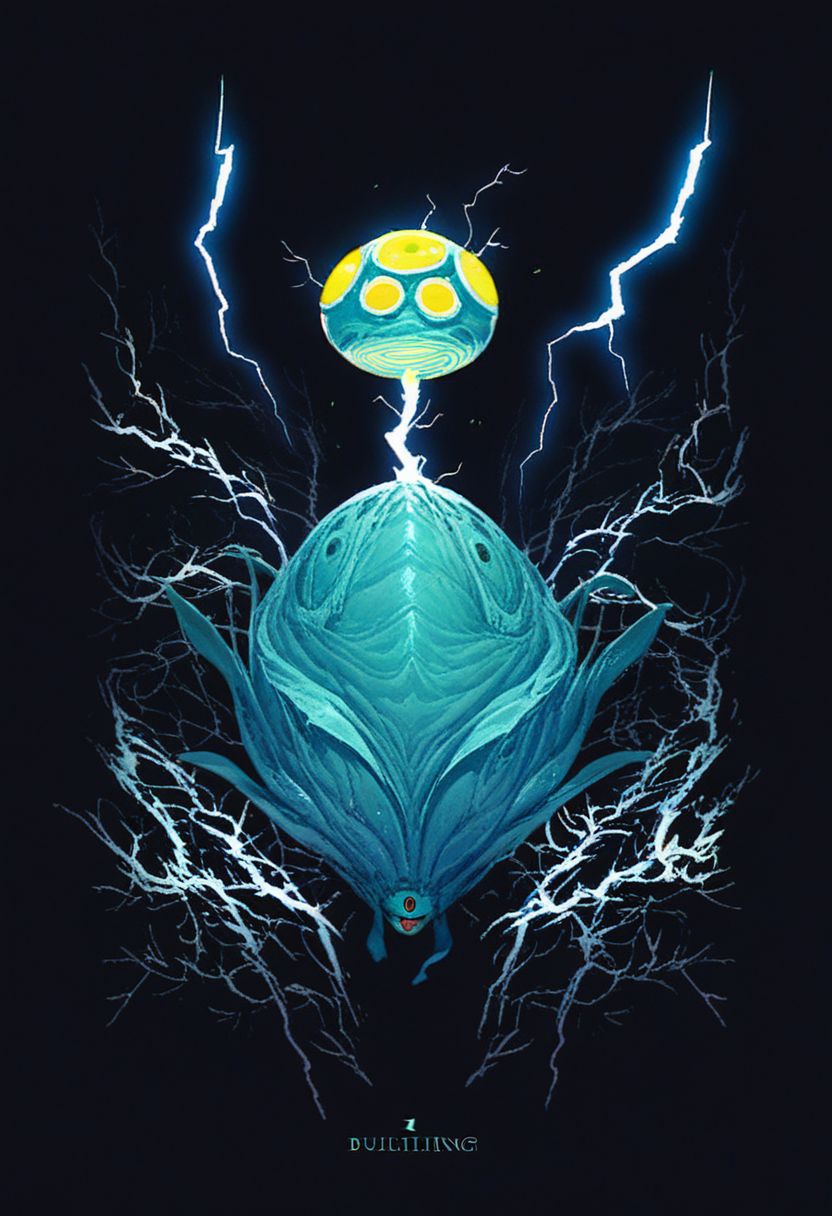 score_9, score_8_up, source_anime, solo, anthropomorphic, unusual creature, concept art, beautiful alien, anthropomorphic, adorable alien, sea slug, frog, lightning, neon glow, blue, giant eyes, pure black background
