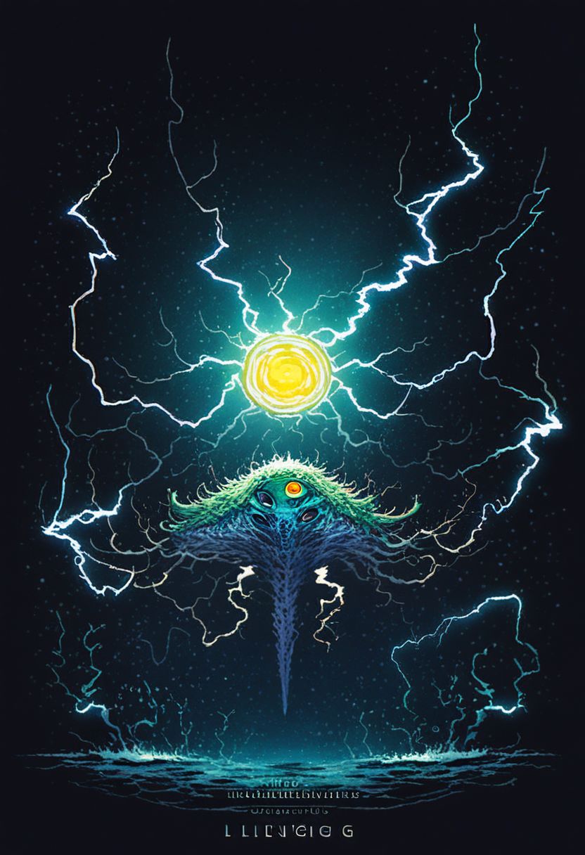score_9, score_8_up, source_anime, solo, anthropomorphic, unusual creature, concept art, beautiful alien, anthropomorphic, adorable alien, sea slug, frog, lightning, neon glow, blue, giant eyes, pure black background
