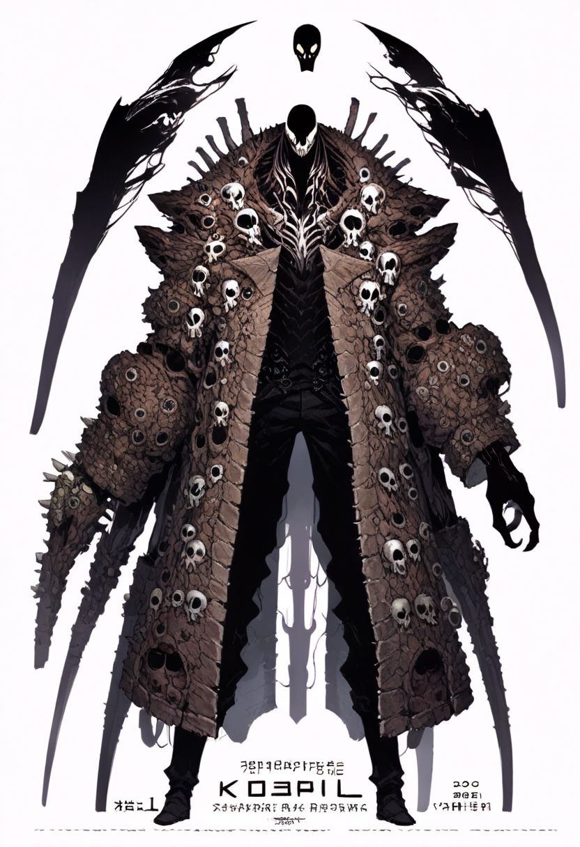 score_9, score_8_up, source_anime, rating_safe, anthropomorphic, unusual creature, skull, concept art, creature, beautiful alien, anthropomorphic, black silhouette on a pure white background, a full-length character of an alien fictional race, the body shape consists of drapes, trenchcoat, futuristic style