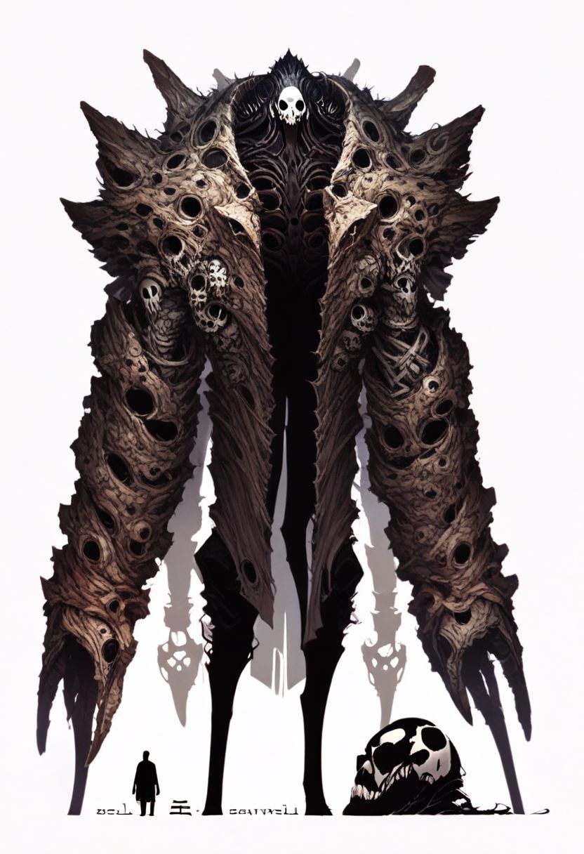 score_9, score_8_up, source_anime, rating_safe, anthropomorphic, unusual creature, skull, concept art, creature, beautiful alien, anthropomorphic, black silhouette on a pure white background, a full-length character of an alien fictional race, the body shape consists of drapes, trenchcoat, futuristic style