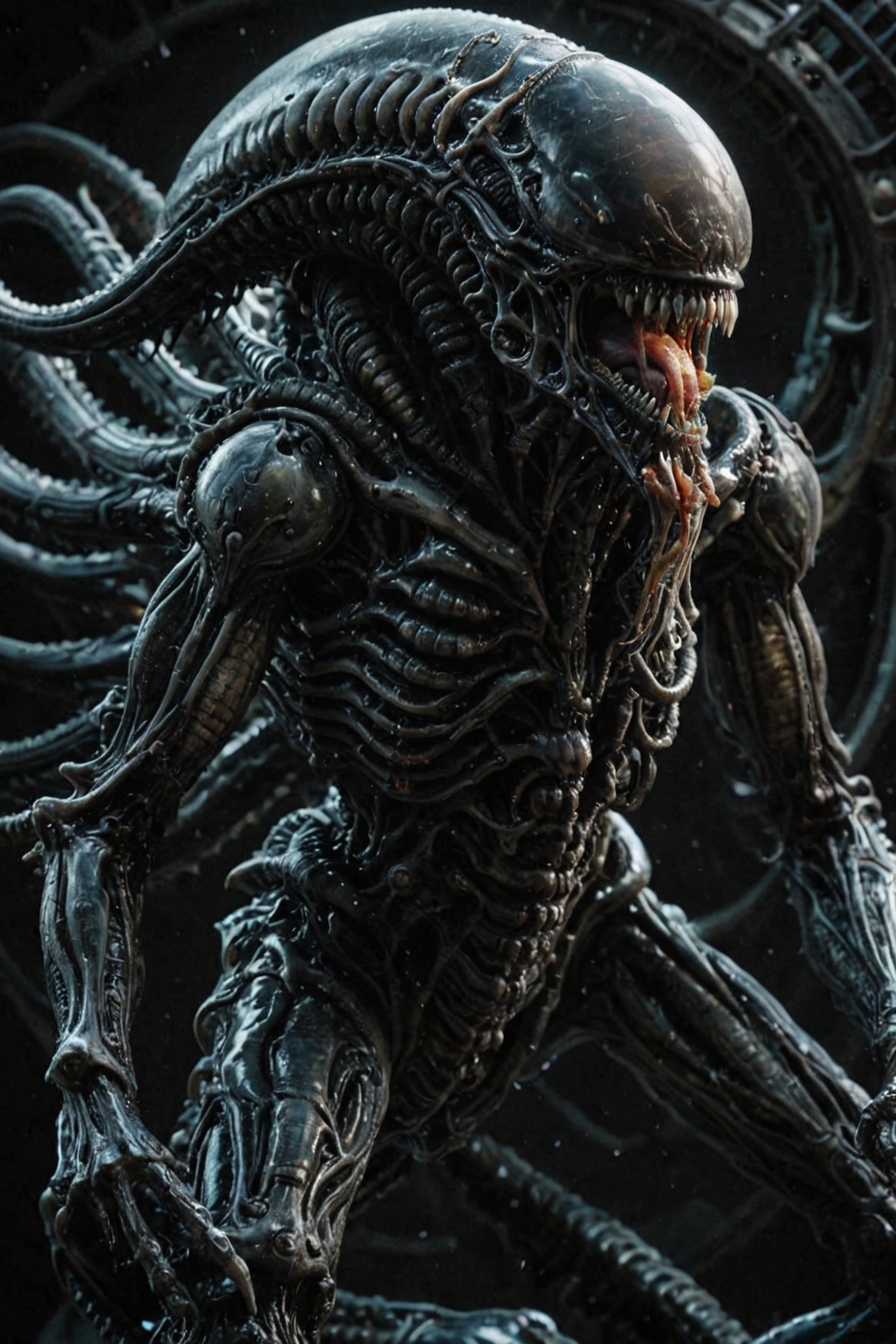 <lora:ElectronStyleXL_v2:1>El3ctr0nStyle, full body cinematic view of a giger alien xenomorph1024 xenomorph nestling, shiny, cosmic art, colorful, glowing background, masterpiece, ultra detailed, chaos, dark tones, symmetric, covered with shiny slime and goo and gooey <lora:Xenomorph1024:0.4>, front view, open mouth, sharp teeth, spider venom, (masterpiece:1.2), (intricate details:1.2), cinematic lighting, realism, realistic, RAW photo, 4k, highres, extremely intricate, photorealistic, selective focus, best quality, photo, real, extremely detailed, amazing, fine detail, rich colors, hyperrealistic lifelike texture, dramatic lighting, unrealengine, trending on artstation, cinestill 800 tungsten, high quality, sharp focus,8k uhd, absurdres