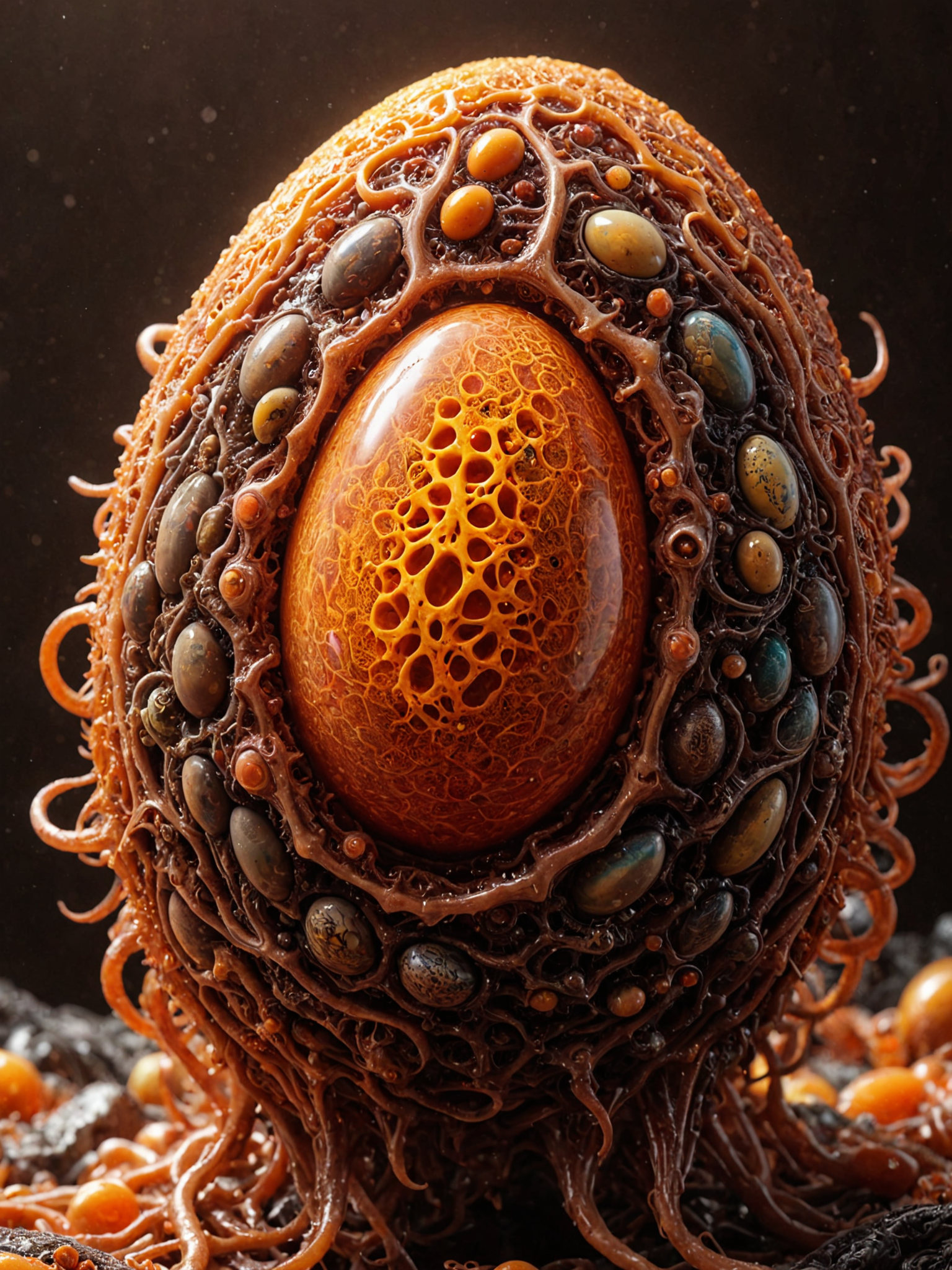 <lora:ElectronStyleXL_v2:1.0>El3ctr0nStyle, a giger alien nestling egg, shiny, surrounded by bacteria and viruses, cosmic art, colorful, glowing background, masterpiece, ultra detailed, chaos, red and orange and yellow tones, symmetric, covered with slime and goo, giger style