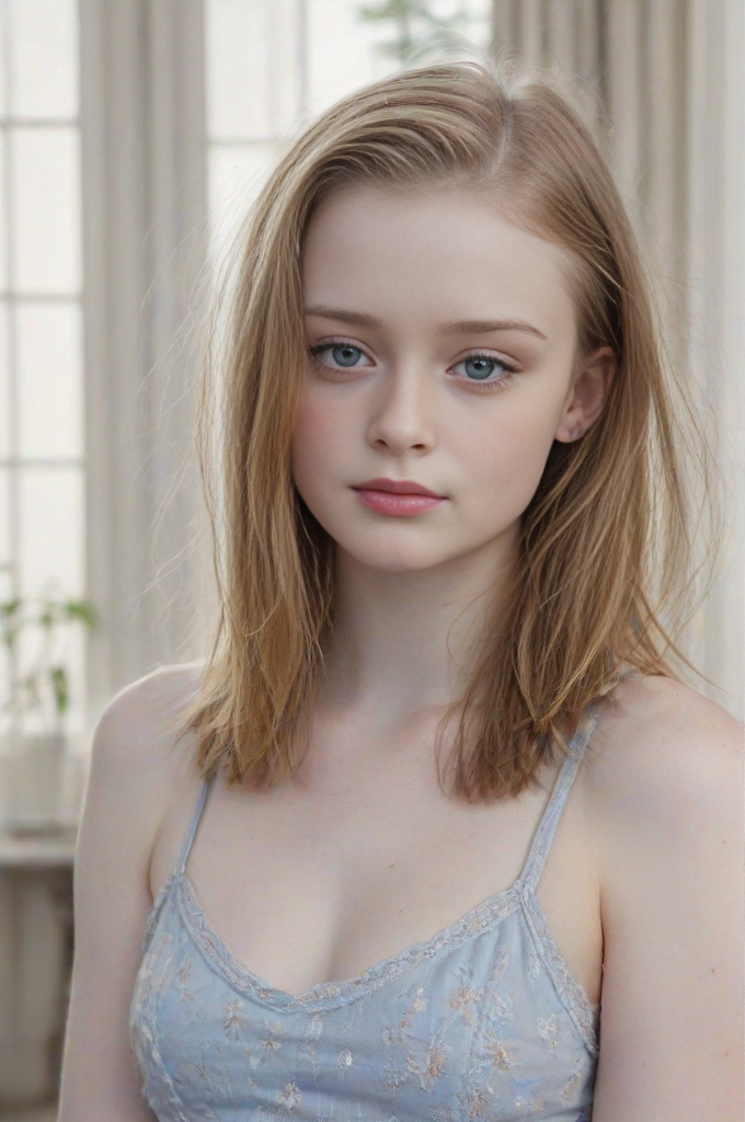 (((Medium close-up portrait, view))), best quality, ultra high res,prefect anatomy, extremely intricate, 8k uhd, 1girl, (18 year old:1.5) <lora:Ingda_Doe:1> pale skin, ginger hair, naughty face, waist portrait <lora:khactu:1> solo, (((light blue see-through skirt))), stand on bedroom, looking at viewer, blue eyes, seductive smile, shaved pussy, pussy juice, large puffy areolae, with classic wallpaper and student room decorations with window, f/1.4, 50mm, depth of field, focus on eyes , (((looking at viewer))), seductive smile, best quality, ultra high res, extremely intricate, 8k uhd, 1girl,solo, indoor, bedroom elegant-flower:0.3