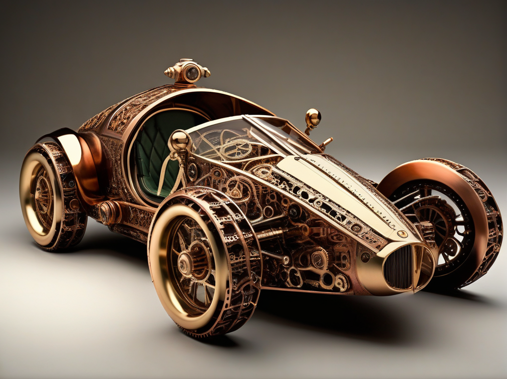 Steampunk style hyper vision car, sport, lamborgini style . Antique, mechanical, brass and copper tones, gears, intricate, detailed