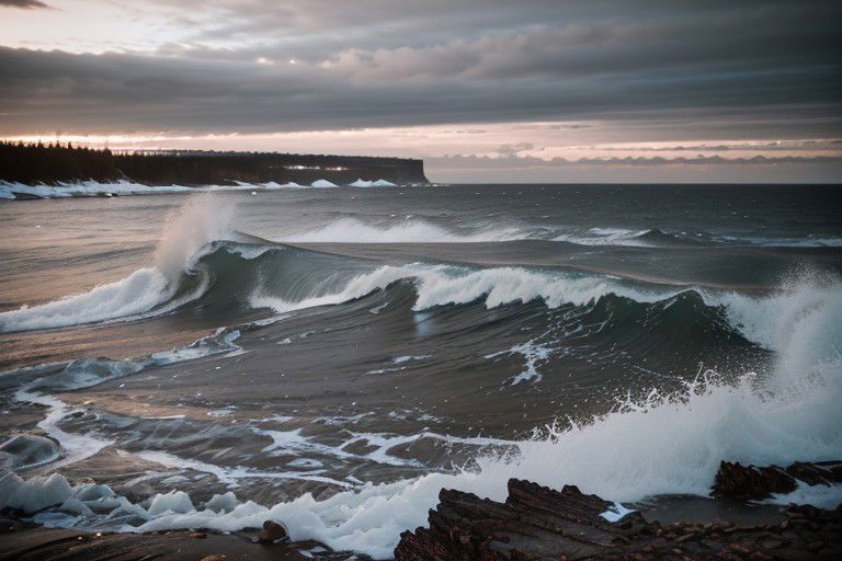 raw photo, Minnesota Lake Superior shoreline in winter, dramatic, large waves, photorealistic, high detailed texture, award winning photo, 8k uhd, dslr, soft lighting, high quality, film grain, Fujifilm XT3, highly detailed photography, (muted colors, cinematic, dim colors, soothing tones:1.2), vibrant, professional photography, hyperdetailed, (dark shot:1.2), (vsco:0.3), (intricate details:0.9), (hdr, hyperdetailed:1.2)
