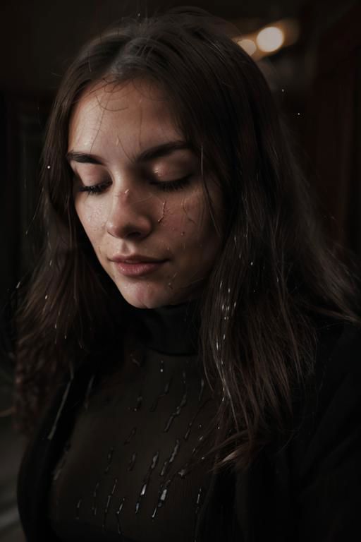 Deep photo, depth of field, ferrania p30 film, shadows, messy hair, perfect face and body, dark, , iphone photo, grainy, dimly lit, seductive smirk, harsh camera flash ((eyes closed)), cum on face,