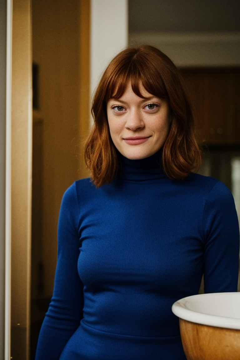 mndngwmn,detailed skin, ginger, wearing a turtleneck bodycon dress, <lora:mondongo_ColbyMinifie:0.9>