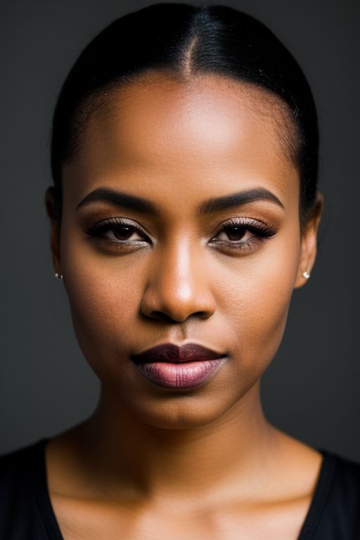 Raw photo, portrait of dark skinned HOT 28 y.o african woman, BREAK very short haircut style, BREAK bangs, goddess of fertility, makeup, dark lipstick, mascara, eyeliner, fake eyelashes, dark theme, soothing tones, muted colors, high contrast, (natural skin texture, hyperrealism, sharp details), (((perfect face))), , BREAK studio lighting, low key light, dimly lit, BREAK a african print style tissue background, Fujifilm XT3, Fujifilm XF 56mm, f/1.2, depth of field, bokeh, film grain, absurdres, high contrast, photorealistic, centered, best composition, rule of third, award winning photography, modelshoot, film photography, professional photography, dslr, detailed shadows,(medium shot:1.5),