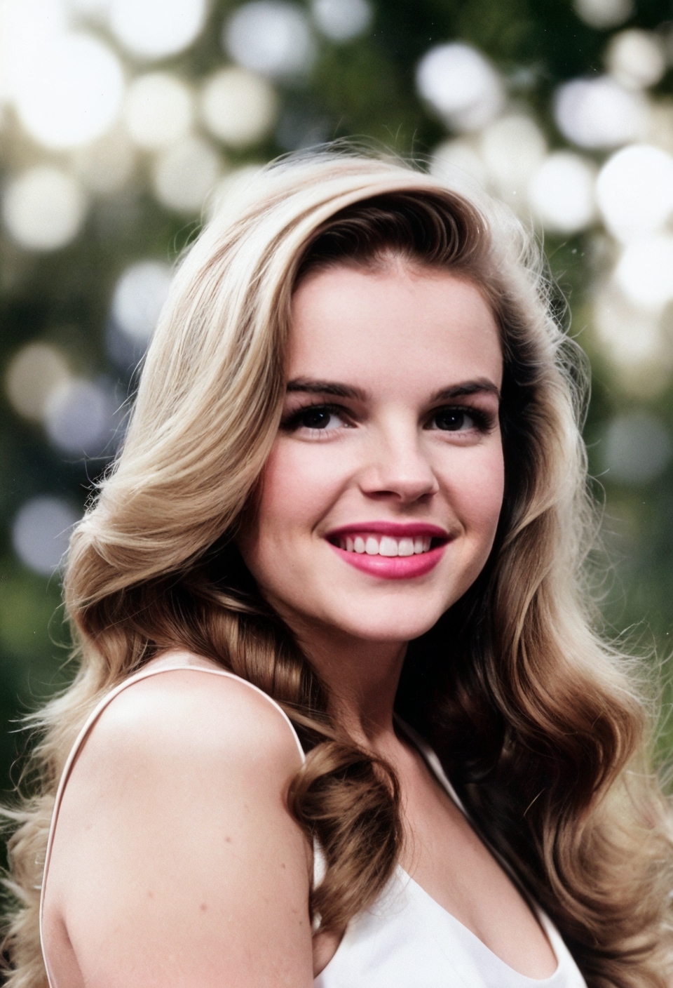 (full body:1.1), (raw photo of ohwxjg woman), (20 y.o), blonde hair, (pale white skin), detailed skin, detailed eyes, epiCPhoto, dslr, (wears a modern sexy dress:1), (bokeh:1.2), (smiling:1.2), (ohwxjg woman), <lora:JudyGarland-000011:0.7>,(long hairs:1), straight hair, (modern colors, cinematic:1.2), (ohwxjg in the 2020's:1.1), (By David Hamilton:1.1), modern look, (in the nature:1.2)