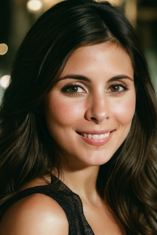 jamielynnsiglerlora, (wearing a black blouse),(RAW photo, best quality), (realistic, photo-realistic:1.4), masterpiece, an extremely delicate and beautiful, extremely detailed, 2k wallpaper, Amazing, finely detail, extremely detailed CG unity 8k wallpaper, ultra-detailed, highres, soft light, beautiful detailed girl, extremely detailed eyes and face, beautiful detailed nose, beautiful detailed eyes,cinematic lighting,city lights at night,perfect anatomy,slender body,smiling <lora:jamielynnsiglerlora:1>