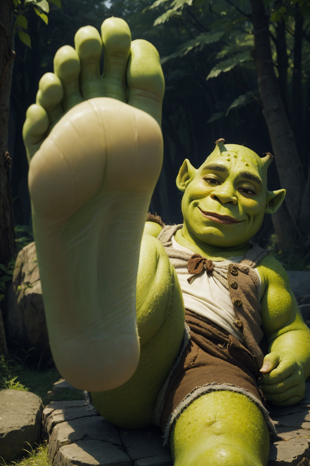 barefoot, footstomp <lora:POVFootStomp:1.0> green skin, (shrek:1.1)