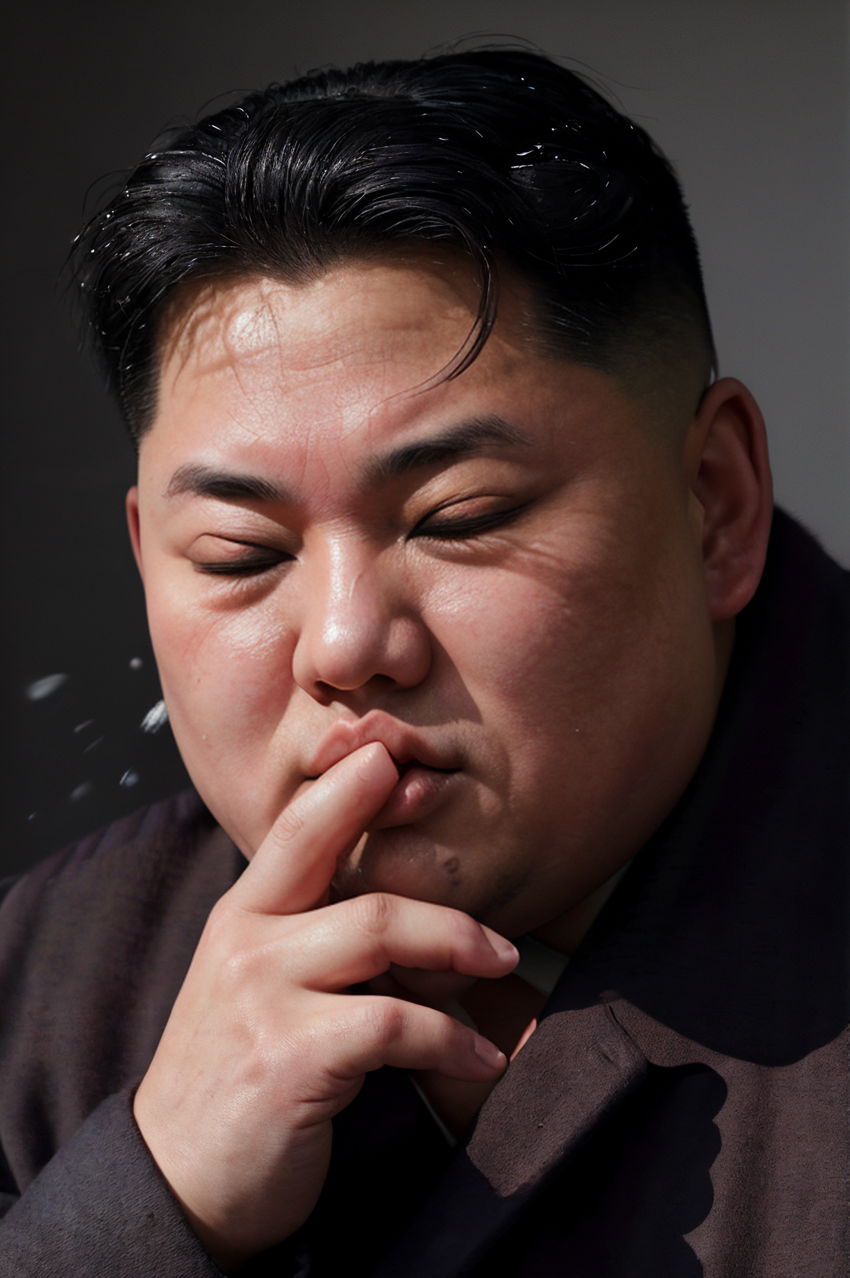 picture of kim jong un sneezing, closed eyes, blush, (hands covering mouth:1.2), (FISneezing:1.5) <lora:epi_noiseoffset2:1> , BREAK (masterpiece, extremely detailed skin, photorealistic, heavy shadow, dramatic and cinematic lighting, key light, fill light), sharp focus <lora:FISneezing:1.5>