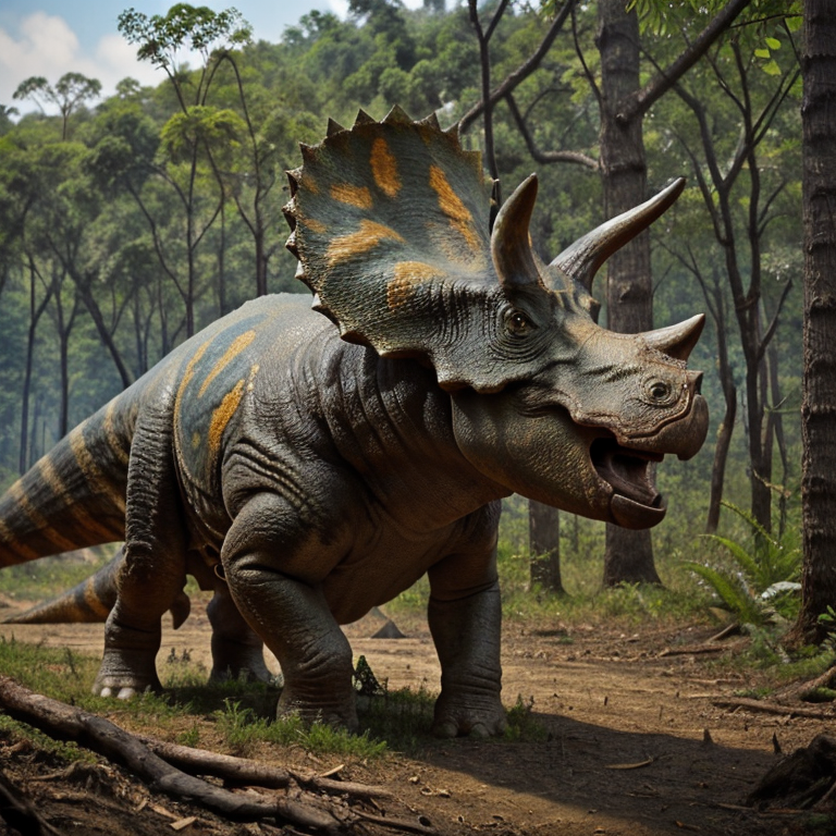 masterpiece, best quality, <lora:Triceratops_Dinosaur_Dim32_Anime:0.8>, Triceratops_Dinosaur, Jurassic jungle,