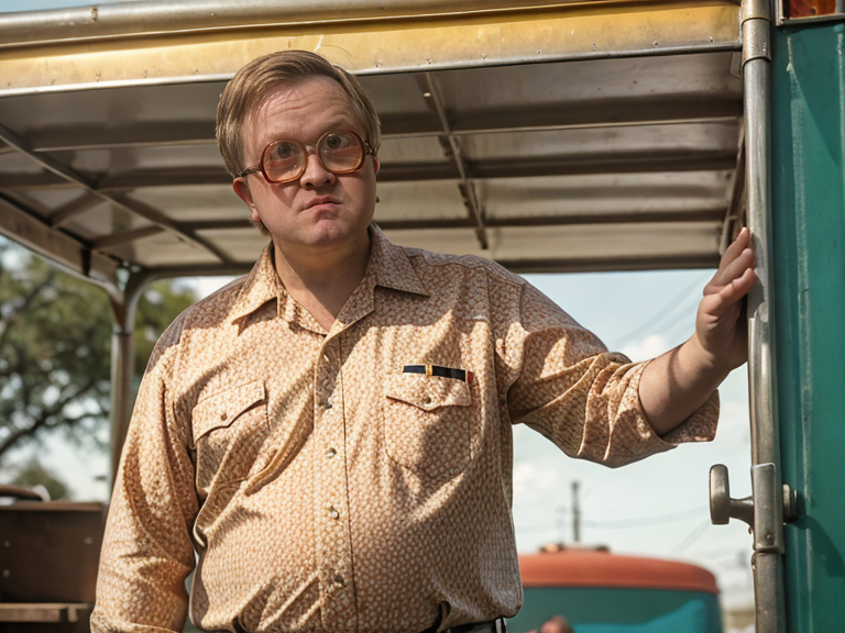 RAW photo, from down low, upper body photo of tpbBubbles, old, tall, standing up straight, wondering who that is, aiming a colt 45, wearing a shiny wrestling costume, (trailer park:1.2), detailed iris, detailed lip texture, (high detail skin:1.1), Fujifilm XT3, Intricate, High Detail, Sharp focus, dramatic, stunning, hdr, subsurface scattering, global illumination, film still, Film-like, bokeh, 3d, vivid color/raytraced/warm colors, <lora:TpbBubbles:1.5>