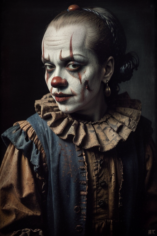 art by Johannes Vermeer, Thermal camera, Redshift render, buff disgusting and scary horrific killer clown, cute but dangerous, (((deadly))), Sketched, Pastel Goth Art, Ambrotype, (high quality), (detailed), (masterpiece), (best quality), (highres), (extremely detailed), (8k) Killer, horrifying , frightening