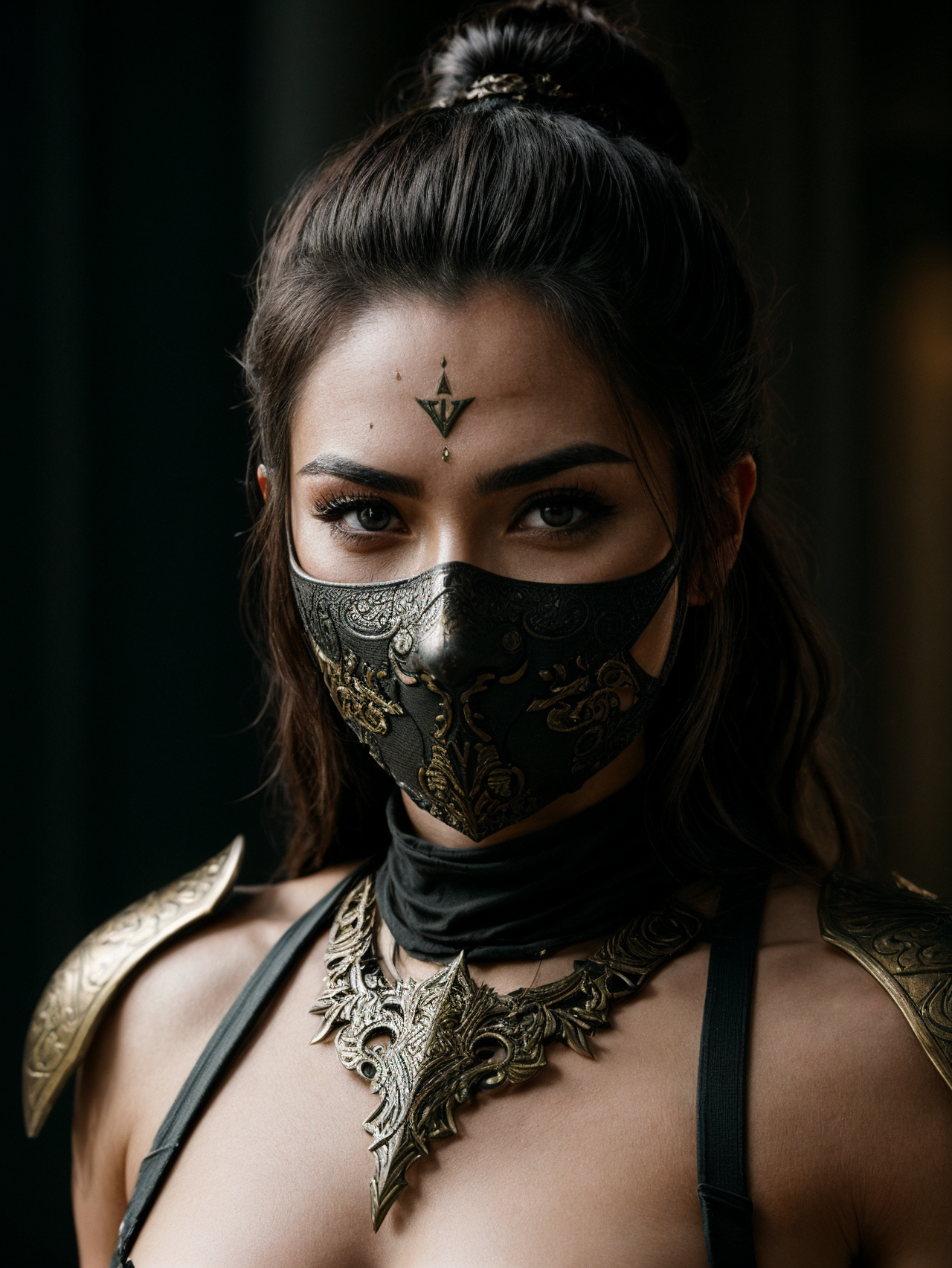 a warrior woman, armor ninja still,(face tattoo:0.2), fantasy still detailed eyes, (highly detailed skin:1.2), ((best quality)), (detailed), 8k uhd, <lora:more_details:0.5>