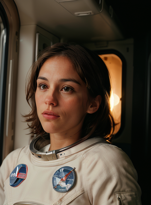 AmyJoJohnson, <lora:AmyJoJohnson-v15-byShurik:1> In this close-up shot, the camera focuses on a woman pink astronaut inside a space shuttle, gazing out into the vastness of space through a window. (Best quality: 1.3) The scene captures the awe-inspiring beauty and the sense of exploration that comes with being an astronaut. (Masterpiece: 1.3) The astronaut's pink spacesuit, form-fitting and sleek, accentuates her figure while maintaining functionality. (Detailed: 1.2) The lighting inside the shuttle creates a soft glow, enhancing the overall atmosphere of wonder and adventure. (Soft lighting: 1.4) As she looks out into space, her expression is a mix of determination and awe, reflecting the incredible journey she is on. (Close-up expression: 1.3) This portrayal captures the essence of a woman astronaut embracing the beauty and excitement of space exploration, while also embodying a touch of sensuality through the form-fitting nature of her spacesuit. (Full body: 1.3)
