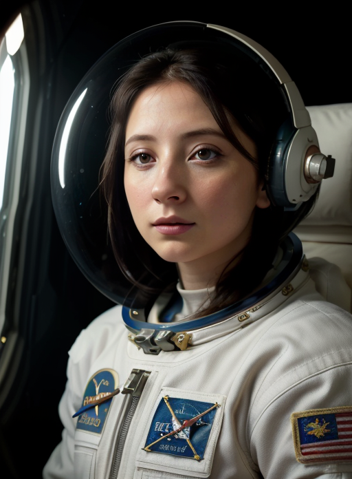 AShleyRos <lora:AShleyRos2-v15-byShurik:1> Women 30 years old, (best quality:1.3), (masterpiece:1.3), (detailed:1.2), 8K, space station scene, an astronaut floating gracefully inside the International Space Station, surrounded by a multitude of high-tech equipment and instruments, (soft:1.4) diffused lighting with gentle reflections of sunlight off the space station's surfaces, (close-up:1.3) shot style focusing on the astronaut's face and upper body, (realistic art style:1.2) with meticulous attention to detail on the spacesuit, highlighting the texture and functionality of each component. The astronaut's visor reflects the vastness of space, creating a sense of awe and wonder. With a peaceful expression on her face, she gazes out into the endless expanse, witnessing the Earth below and the stars above. The image captures the solitude, beauty, and scientific exploration that encompass the experience of being an astronaut in space,(full body:1.3)