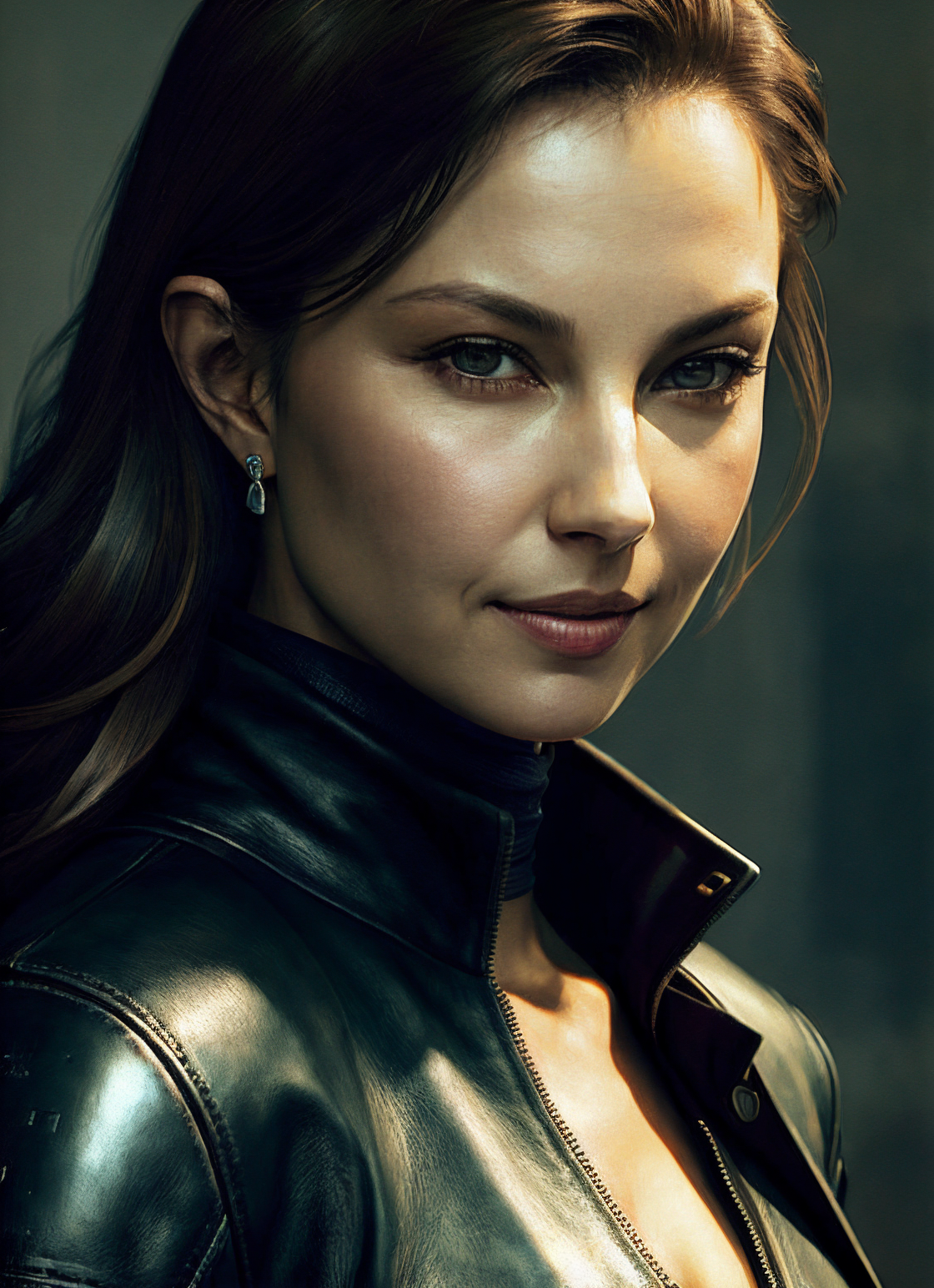 illustration of sks woman as thief in leather armor, smirk, beautiful detailed eyes, cinematic, drawn by Greg Rutkowski, Yoji Shinkawa:0.6, vibrant colors, <lora:locon_ashleyjudd_v1_from_v1_64_32:1.25>