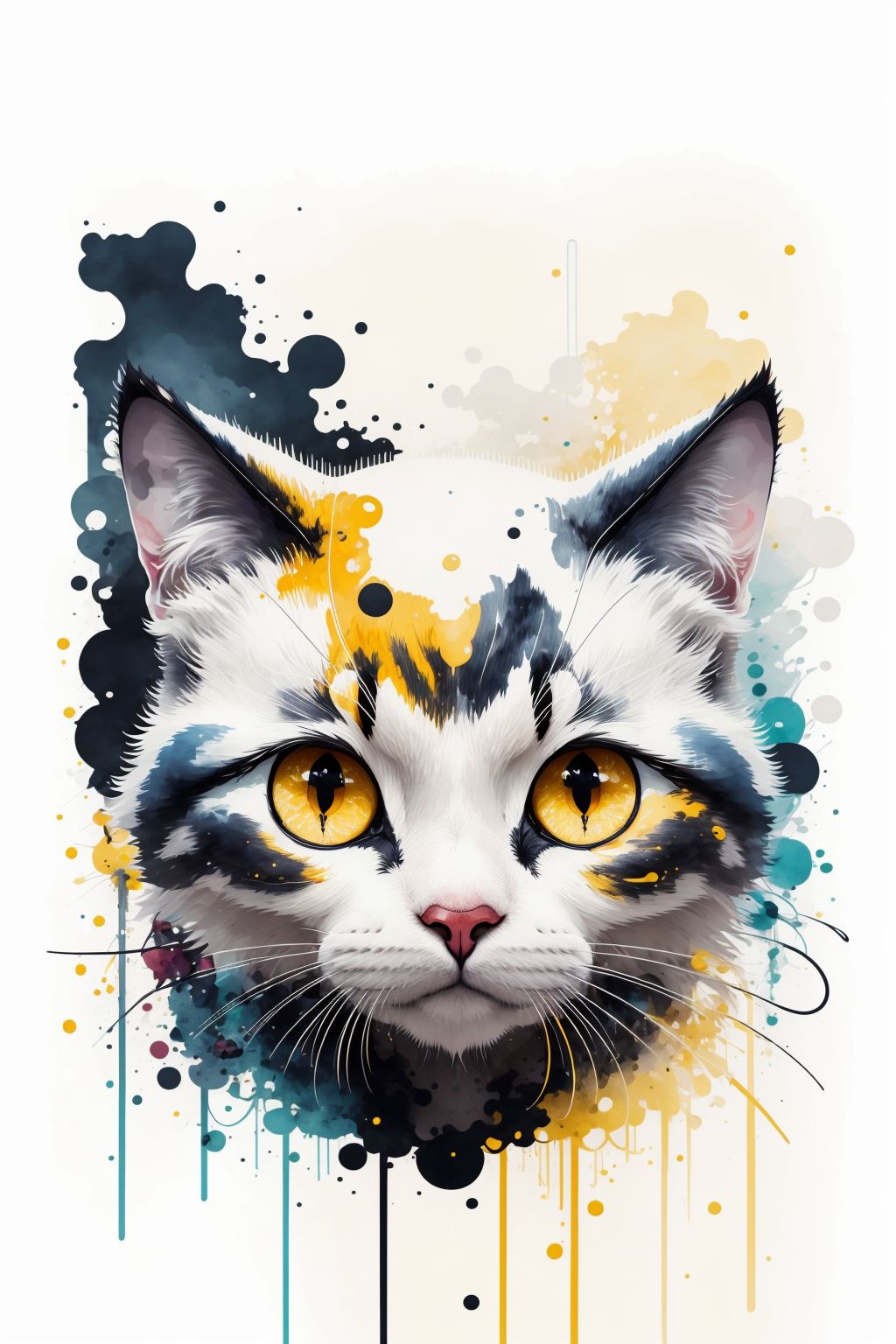 masterpiece, best quality, cat, large eyes, (cartoon), upper body, splashing, abstract, psychedelic, (neon:0.8), extremely detailed, (white background:1.3), ink, (creative:1.3), intricate detail, (pretty face), dynamic lighting, natural lighting, (yellow:1.3), photorealistic, sy3 <lora:Sy3:0.35> <lora:ink-0.1-3-b28-bf16-D128-A1-1-ep64-768-DAdaptation-cosine:1>