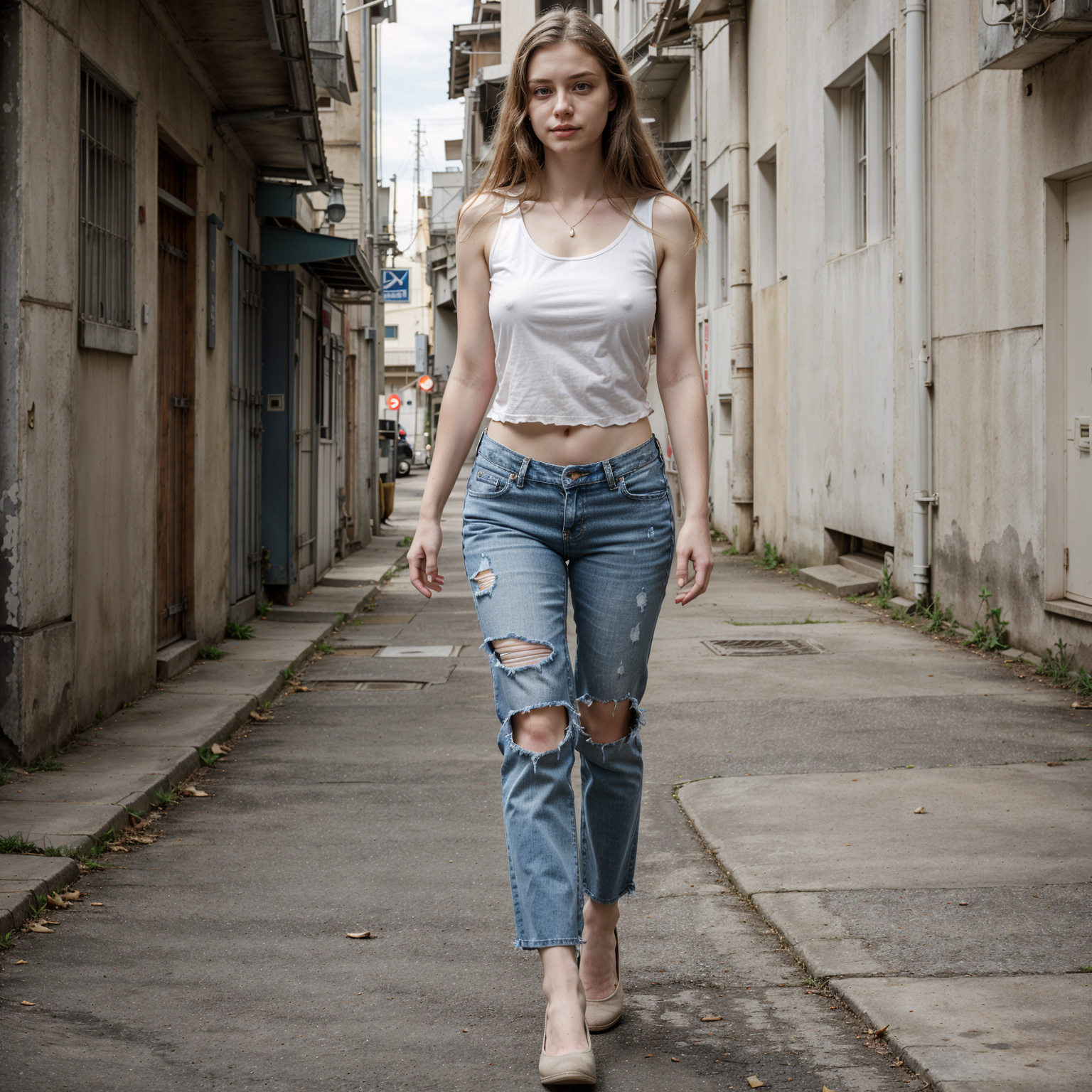 (realistic:1.2),full body,1girl,sleeveless_shirt,torn_jeans,pants_down,tight,full_shot,highres,<lora:breastsizeslideroffset:0.3>,<lora:GoodHands-vanilla:1>,<lora:add_detail:0.7>,<lora:age_slider_v6:-1>,<lora:skin_tone_slider_v1:-1.5>,