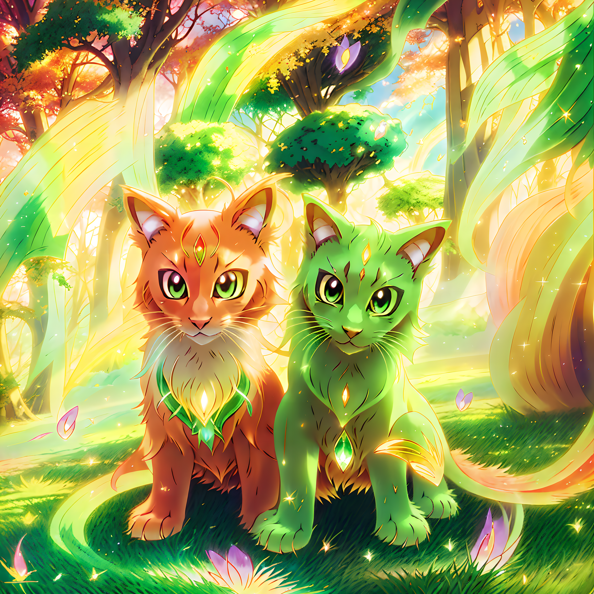 anime artwork ethereal fantasy concept art of Pokémon style two green cats <lora:Wakaba-Subaru:1> <lora:pokemon_v3_offset:1> . vibrant, cute, anime, fantasy, reminiscent of Pokémon series . magnificent, celestial, ethereal, painterly, epic, majestic, magical, fantasy art, cover art, dreamy . anime style, key visual, vibrant, studio anime, highly detailed