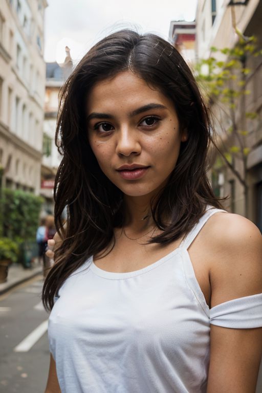 photo of a portrait of rich Sri Lankan young girl in rags, ((overwhelming fatigue )), wrinkles of age,luxury,nature,spirit, face, half body, chubby body,high detailed skin, sport top, city,street, weather cool,wind, 8k uhd, dslr, soft lighting, high quality, film grain, Fujifilm XT3,<lora:add_detail:1>, <lora:more_details:0.5>,