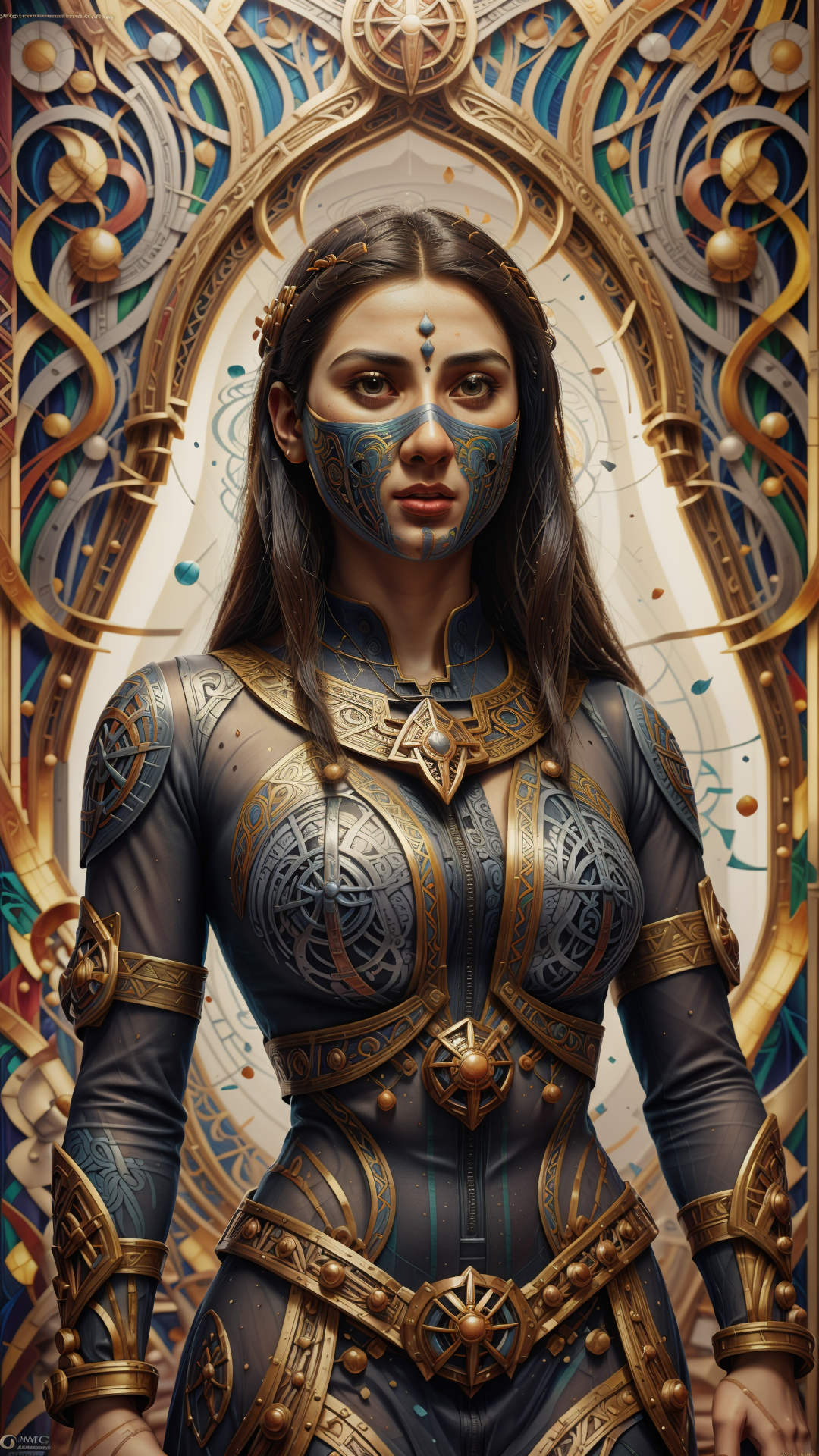 RAW photo, photorealistic, <lora:GaelicPatternStyle:1> GaelicPatternStyle portrait of a modern south asian woman wearing a dark shirt, upper body 2d game avatar, default pose neutral expression, face-on, close-up, eye-contact, Donato Giancola, soft filmic tonemapping, chiaroscuro lighting, shape language, Alphonse Mucha/Gustav Klimt style, alpha masked transparent flat grey background, 4k, volumetric lighting, French Nouveau, trending on artstation, octane render, hyperrealistic, (Masterpiece:1.3) (best quality:1.2) (high quality:1.1)