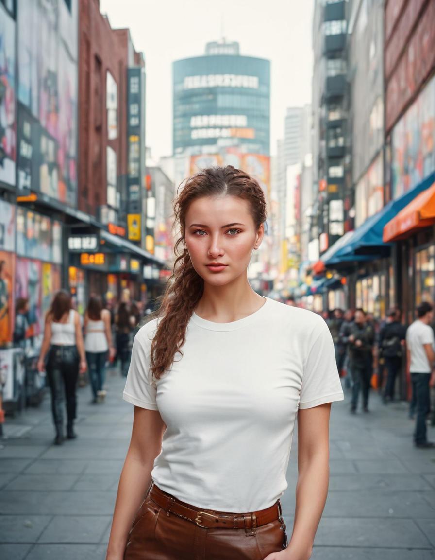 AndredraXL, Woman, Before the vibrant murals of a bustling street art alley, where color and creativity explode, a cinematic photo is vividly captured. Full body shot focus, Photorealistic portrait in breathtaking detail, photo scanned at ultra-high resolution, inspired by Helmut Newton and Peter Lindbergh. Bright, eclectic light, colorful urban backdrop, a playful smirk, bright eyeliner, hair styled in a high ponytail, wearing a fitted white tee tucked into high-waisted leather pants, a chunky belt, and combat boots, embodying street chic, 35mm photograph, film, bokeh, professional, 4k, highly detailed, AndredraXL, Woman, Before the vibrant murals of a bustling street art alley, where color and creativity explode, a cinematic photo is vividly captured. Full body shot focus, Photorealistic portrait in breathtaking detail, photo scanned at ultra-high resolution, inspired by Helmut Newton and Peter Lindbergh. Bright, eclectic light, colorful urban backdrop, a playful smirk, bright eyeliner, hair styled in a high ponytail, wearing a fitted white tee tucked into high-waisted leather pants, a chunky belt, and combat boots, embodying street chic, 35mm photograph, film, bokeh, professional, 4k, highly detailed, very clear, polished, complex artistic, sharp fine classic futuristic luxury stunning