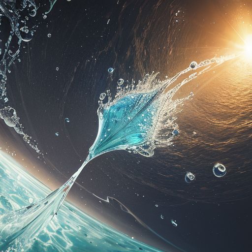 A big four leaf clover on a bubble emerging out of the water while being held by a hand of a female underwater, casting a cascade of droplets in all directions, refracting colorful light in the droplets, color burst, explosion, fused, color bomb, HDR.