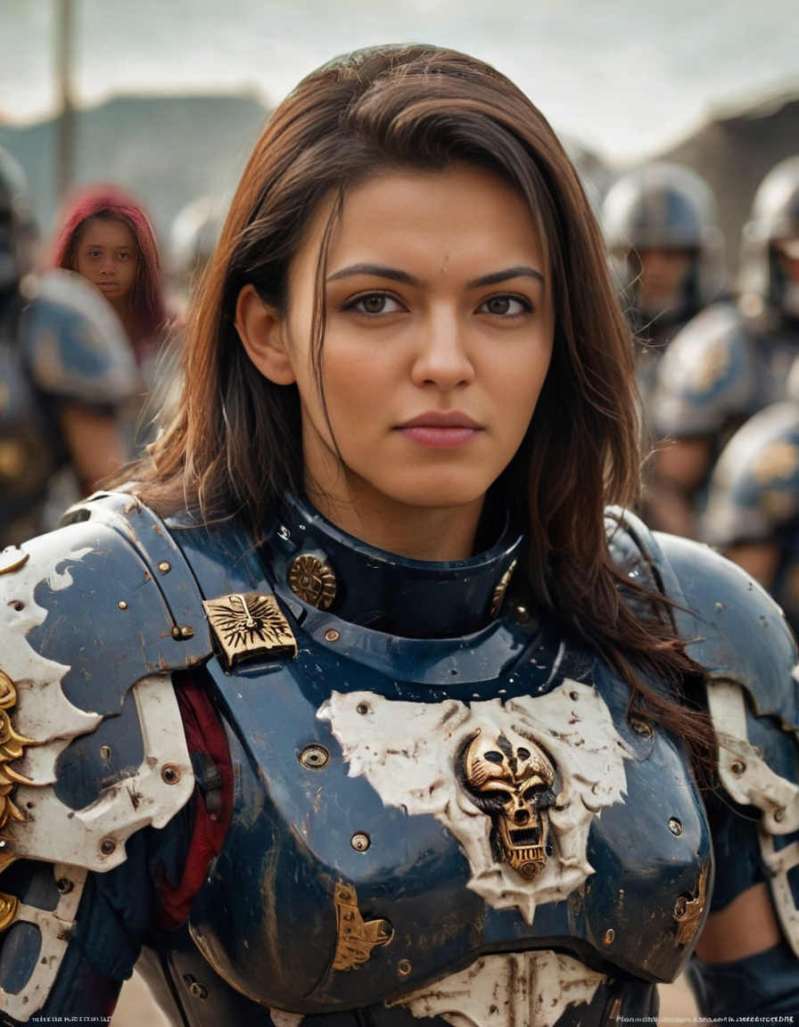 <lora:AparnaDasSDXL:1>500mm portrait cinematic photo, AparnaDas as a devout sister of battle in action-packed scene from Pariah Nexus , (eye contact):2, (half-body shot:2), in insane realistic and massive WH 40K space marines armor, streamlined symmetric chest armor, trending on art by Romain Jouandeau, Adam Spizak, Behance