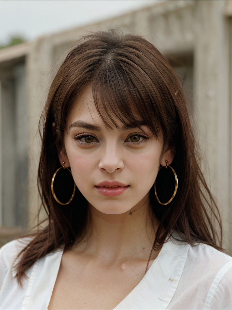 A beautiful kr1st1nk woman,1girl,solo,long hair,looking at viewer,bangs,brown hair,shirt,brown eyes,jewelry,white shirt,earrings,parted lips,lips,traditional media,black background,portrait,realistic,soft lighting, professional Photography, Photorealistic, detailed, RAW, analog, sharp focus, 8k, HD, high quality, masterpiece<lora:kr1st1nk:1.0>