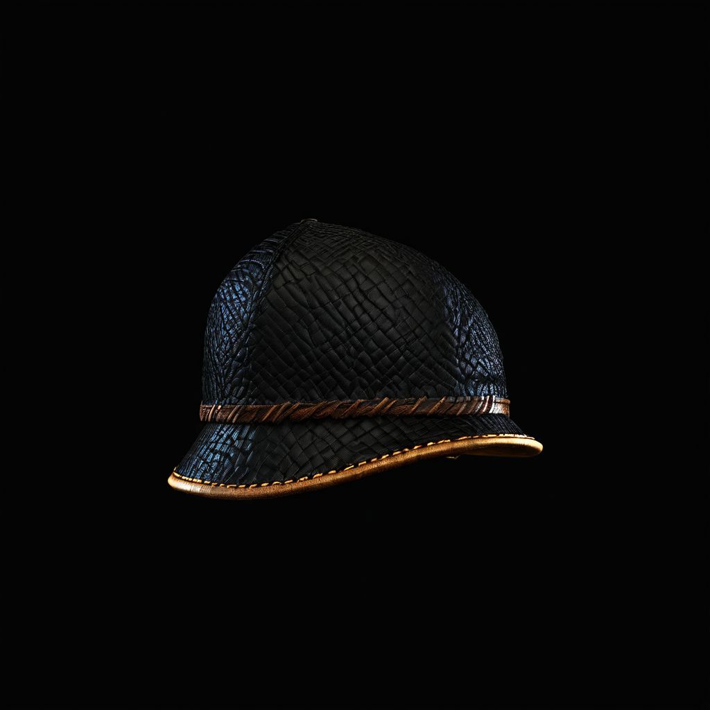 Hyper-realism, HDR, Neanderthal style, helm12, leather hat, black background