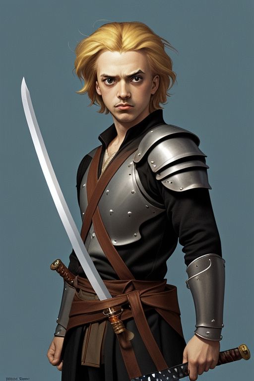 A Saxon human swordsman with Brown eyes, Blonde hair, Normal skin, art by tim Burton and Mike Mignola