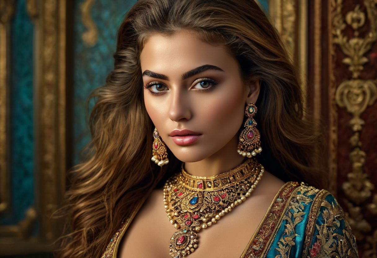 score_9, score_8_up, score_7_up, score_6_up, score_9, score_8_up, score_8, Insanely Detailed Vintage boudoir Photography Of A sensual Mediaval Queen Of Ottoman , Sleek And Straight Hair, Detailed Beautiful Face, Nice Hands, sexy Body, Ottoman Queen Costume. Golden Necklace, Earrings. Background Is Room Of an Ottoman Palace, Baroque Style Designed Sultan's Room, Award Winning erotic Photograph, Volumetric Lighting. Mysterious and very erotic environment,. (Analog photoshoot:1.6).Taken Using A Canon 5D Mark IV With A 35mm Lens, Evoking A (((Miller Earl-Esque, Vogue-Style)) Cinematographic Aesthetic). (High Quality, Detailed Background, Sharp Image:1.24), (Hyper-Detailed:1.15), (Photography, Cinematic Photo, Film-Grain:1.2), (Sharp Photo:1.2) (Taken With A [Pentax 645z | Canon Eos R5]:0.6)Professional photography, bokeh, natural lighting, canon lens, shot on dslr, 64 megapixels, sharp focus, award winning photograph, Epic cinematic brilliant stunning intricate meticulously detailed dramatic atmospheric maximalist dslr photoshoot for fashion magazine cover