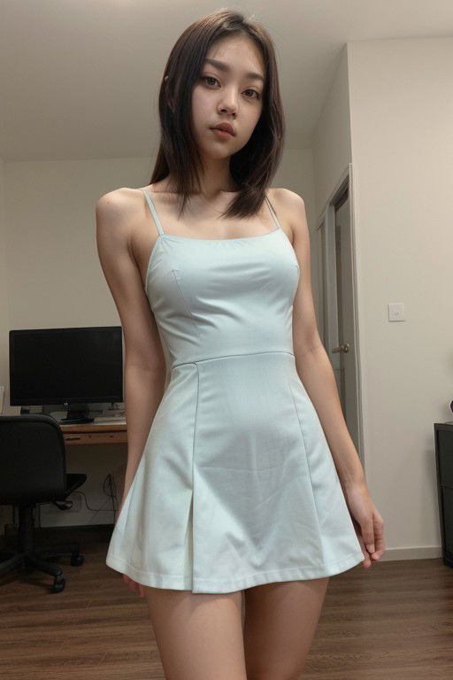 krface1 Asian girls Fine tune face Perfect face Skinny Anorexia body High leg split in dress Cleavagee micro short shorts low waist short shorts