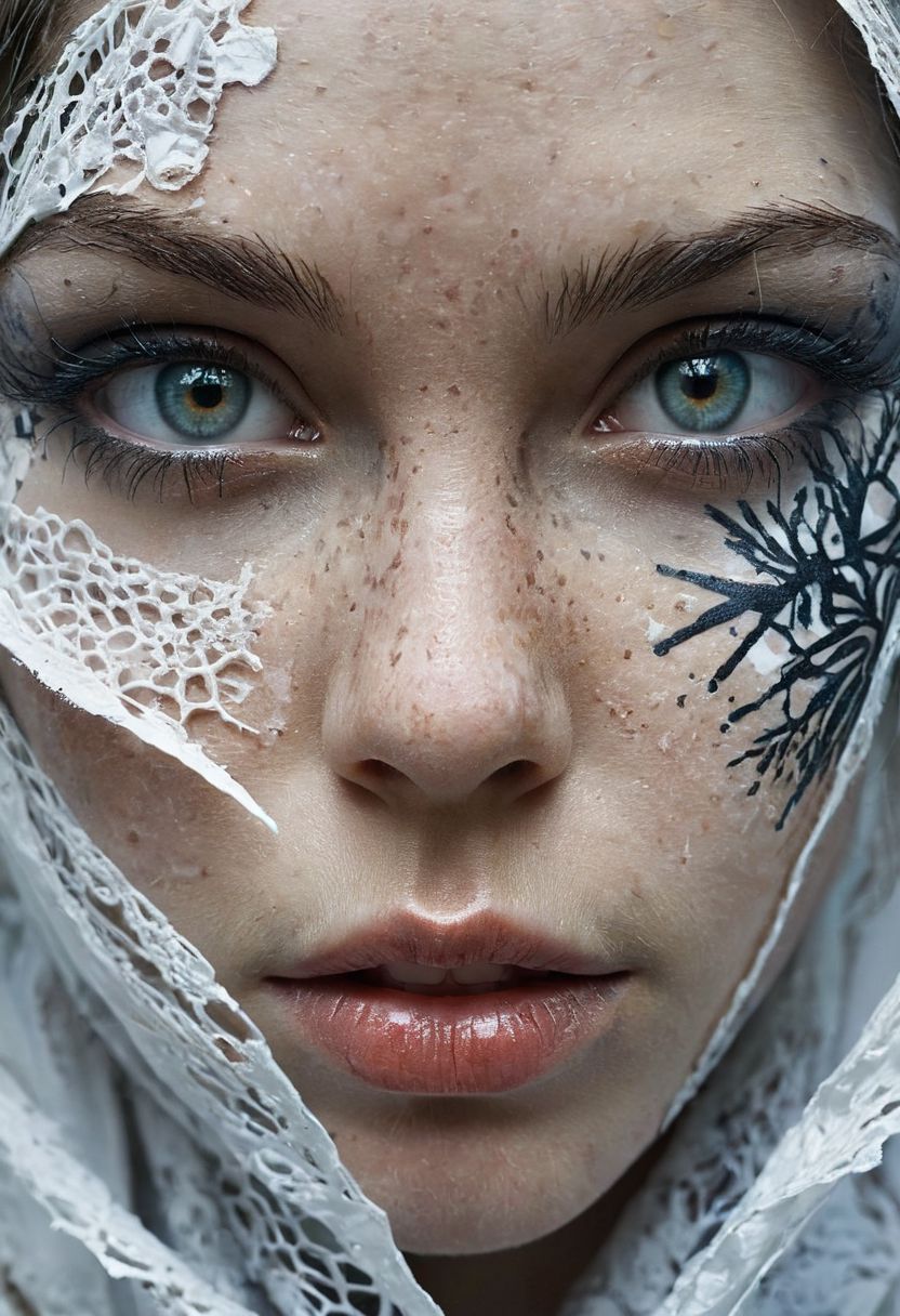 Close-up face, mysterious silhouette of an exotic girl in worn down clothing, white cosmetic over eyes only, goddess, alluring, by Minjae Lee, Carne Griffiths, Emily Kell, Steve McCurry, Geoffroy Thoorens, Aaron Horkey, Jordan Grimmer, Greg Rutkowski, amazing depth, double exposure, surreal, geometric patterns, intricately detailed, bokeh, perfect balanced, deep fine borders, artistic photorealism , smooth, great masterwork by Suiras <lora:add-detail-xl:2> <lora:Double_Exposure:0.5>
