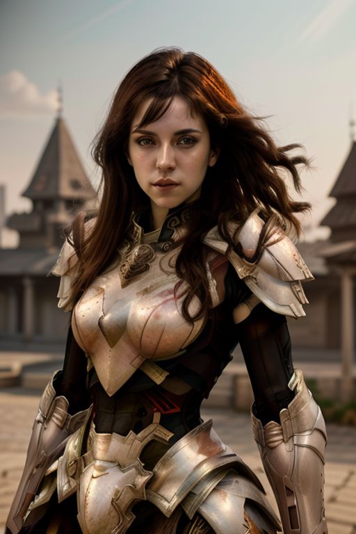 Louis Royo's works, watercolor painting, style of Jovana Rikalo, woman in armor, HXARMOUR, fighting pose, in background a fantasy landscape, very detailled background, intricated details,triadic colors, luminism, vibrant colors, complex background, High detail,highly detailed beautiful expressive eyes, detailed eyes, 35mm photograph, film, bokeh, professional, 4k, highly detailed dynamic lighting, photorealistic, 8k, raw, rich, intricate details, identical iris, curly auburn hair