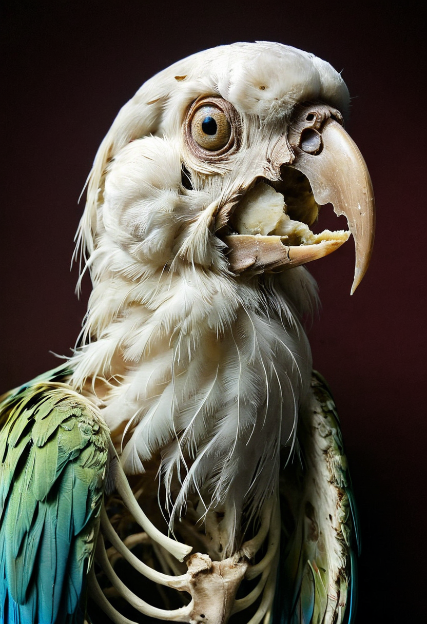 stuffed parrot skeleton, portrait <lora:add-detail-xl:1> <lora:zkeleton:1>