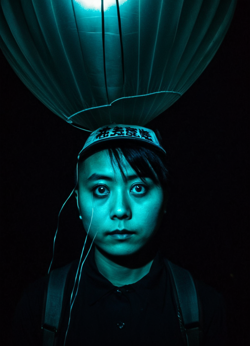 person with a air balloon head,documentary style realism, responsibility, high saturation, dark atmosphere,scary atmosphere, Junji lTO, Chinese Punk, <lora:add-detail-xl:1>, closeup portrait photography, beautiful eyes, capturing emotion, personality, flattering lighting, professional, engaging, compelling composition
