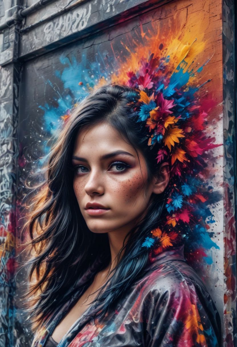 Photorealistic street art photograph of a vibrant mural, with every brushstroke and spray-painted detail captured in crisp detail. Wide range of colours.