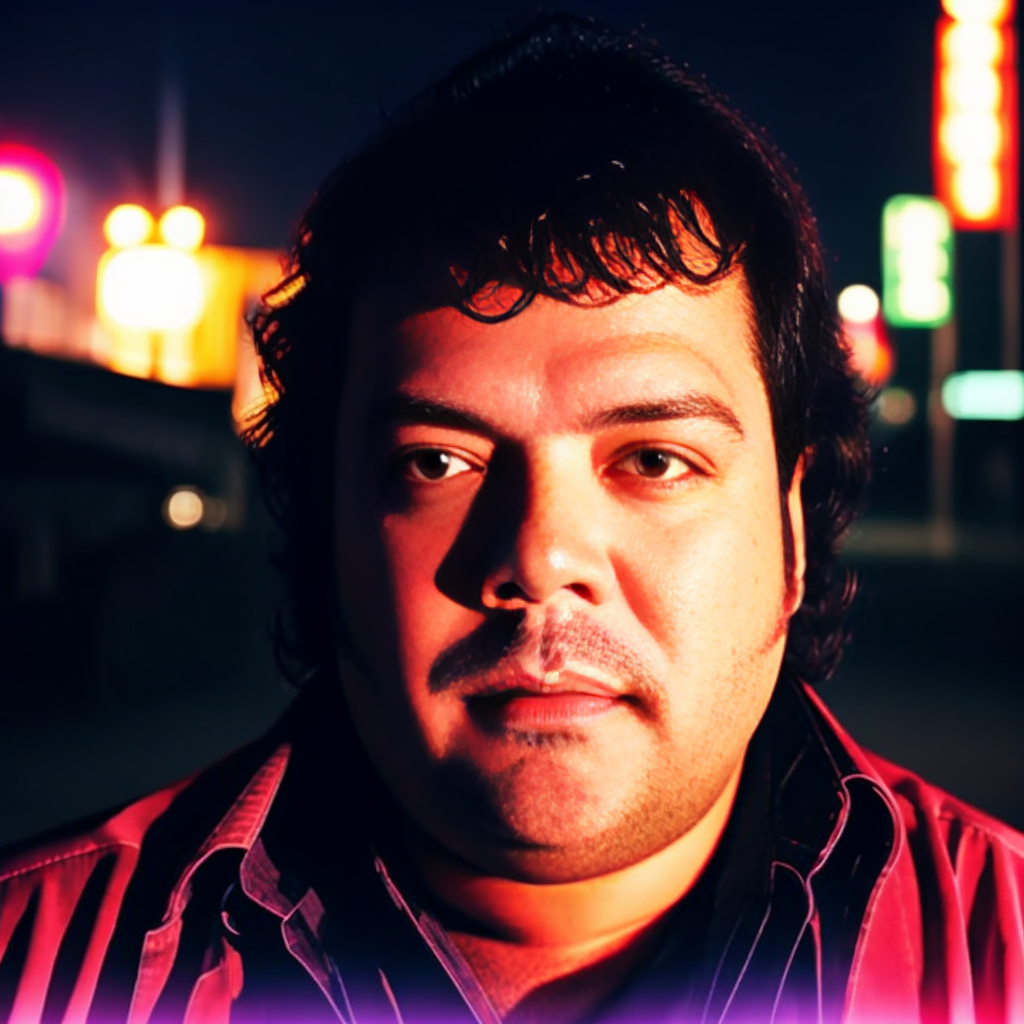 portrait sks man (mattioli:1) medium body, a night in the street, high detailed, hyperealistic, 8k, neon lights, haze, mist, fog in the air <lyco:locon_perfecteyes_v1_from_v1_64_32:0.6> <lora:mattioli:1>