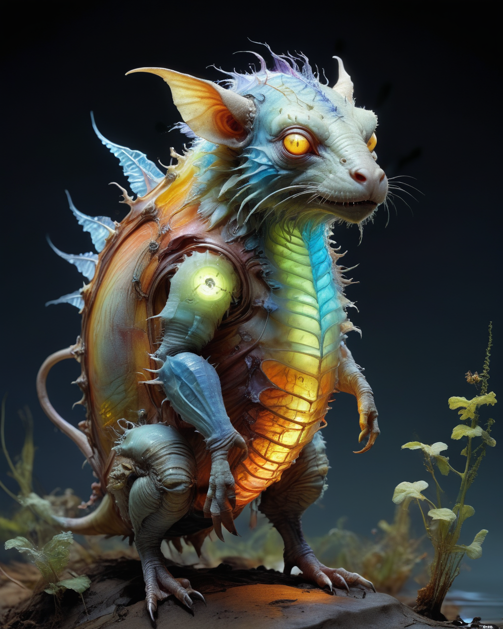 bioengineered chimera, colorful organic bioluminescent patterns, full body, outdoors, hauntingly beautiful, hyperrealistic, ultra resolution, professional photo, <lora:add-detail-xl:0.8>, <lora:xl_more_art-full_v1:0.5>, <lora:Jean-Baptiste Monge Style:1> Jean-Baptiste Monge Style page