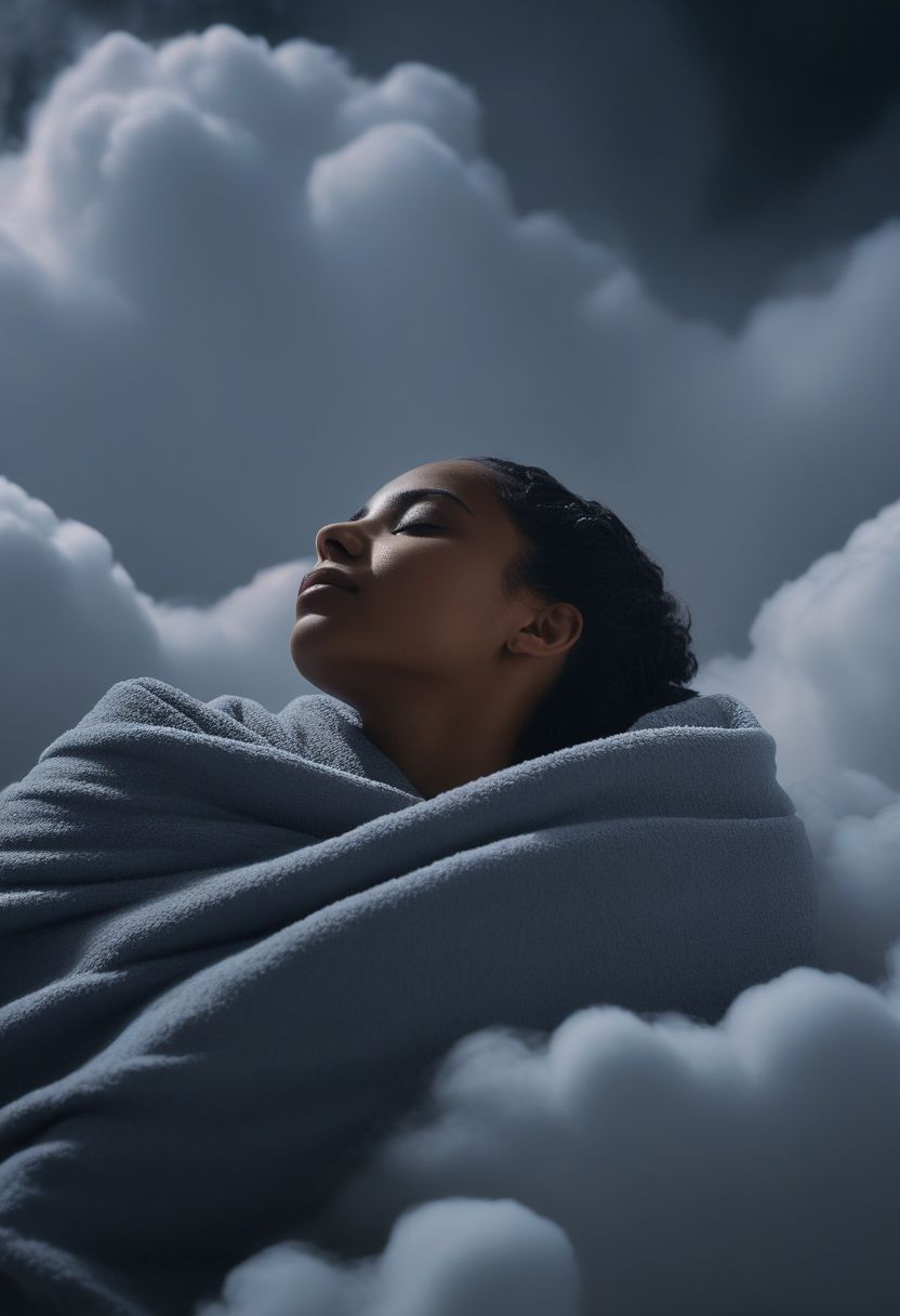 young (Moroccan:1.4) (Nigerian:1.2) woman, fantasy, lying on the clouds, body wrapped in a bath towel, short hair ((High angle)), dark, chiaroscuro, low-key, Photorealistic, Cinematic, High quality, 4k, Cinematic Shot, Film Still, Cinematic Lighting, Movie Still, (smile:0.4), (bokeh:1.2), <lora:JuggerCineXL2:1>
