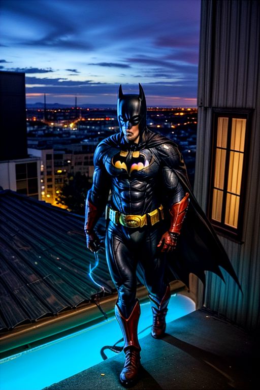 Batman, cape, ((masterpiece, best quality)), (cracked skin:1.2), glowing suit, aura, energy, white electricity skin cracks, muscular male, outdoors, night, (city:1.2), standing on a roof, top down view, detailed background <lora:r1ge - AnimeRage:0.7> <lora:Cracked Skin:1.0> <lora:more_details:0.5>, <lora:LowRA:0.5>, <lora:GlowingRunesAIv4:0.7> <lora:FINAL Robort:0.55> <lora:Unholy:0.6> <lora:epi_noiseoffset2:0.7> <lora:epoxy_skull:0.7>