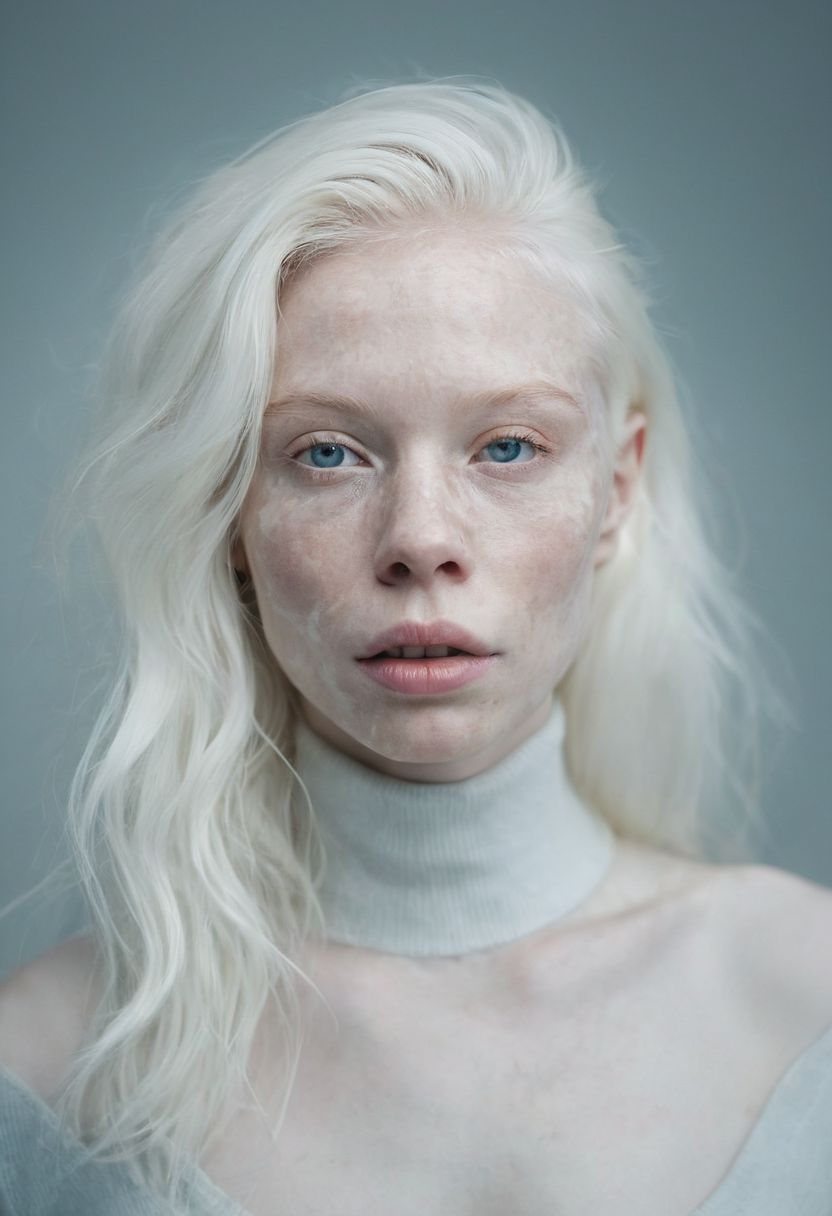 atmosphere, mysterious glow, aesthetic of postcolonial art and impressionism:0.1), artistic magnum opus with polished details, (moonstone white and teal colors:0.1), <lora:MJ52:0.3> <lora:xl_more_art-full_v1:0.3><lora:MJ52:0.5>>contemplative, smirk, piercing blue eyes, extremely long hair, sleek hair, portrait, dynamic pose, (blue turtleneck), 100mm f/2.8 macro lens, , full body, battle stancevibrant, (Cinematic Photography by David Bailey and Adeline Boutain:1.2), award-winning photography, aesthetic and beauty, impeccable details, uniform focus, f/1.4, breakthrough, multiple exposure photography, (center composition, symmetry composition:0.1), (smoke gray and multi-color colors:0.1) <lora:MJ52:0.8> <lora:- SDXL - vanta-black_contrast_V3.0:0.5>black Show less ethereal, (albino:1.3) (nymph:1.3), (albinism:1.4), Lengthened Rectangular Face with Noticeable Jaw and Cheekbones, Clean, Straight Eyebrows, Wide-Set Close-Set Eyes, Majestic Aquiline Nose, Full Lips, windswept (Fine) (stylish short white hair:1.3), (looking at viewer),(Ashen skin:1.3), (flawless skin:1.3), (shiny skin), diaphanous white dress, high neckline on dress, (foggy:1.4), (bathed in thick fog:1.4), (half-obscured:1.3), (Close up:1.2), Dutch Angle), (dynamic composition:1.2), (shallow depth of field:1.2), bright lighting vibrant, in the style of (Ansel Adams:1.3) (Rule of thirds:1.1) Show less